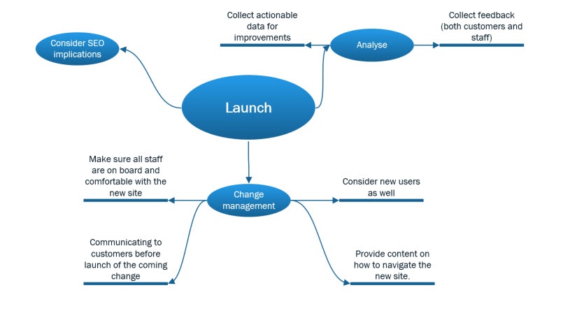Before you know it you’re ready for the site to go live. Since a picture says a thousand words, let’s go back to the trusty mind map to take a look at some of the things that are important to consider: